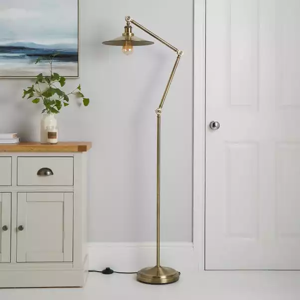Featuring our stylish Churchgate Langton Floor Lamp, crafted with a beautiful antique brass shade and metal base. This floor lamp would be suitable for an array of home décor and would make a timeless addition to your home. Matching family items available to help coordinate your home.