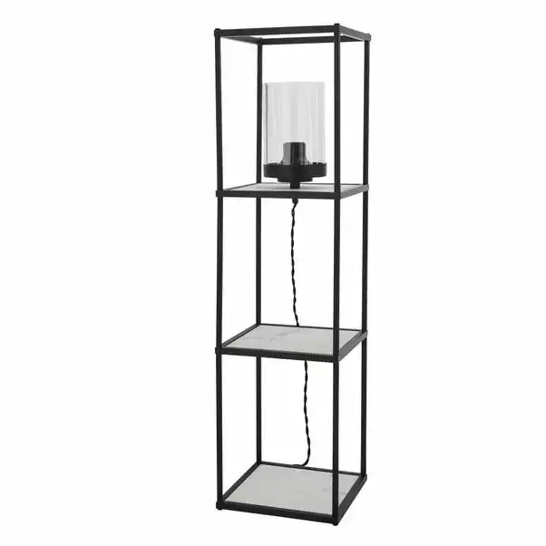 Dunelm Aiko Midi Shelved Floor Lamp Black And Faux Marble