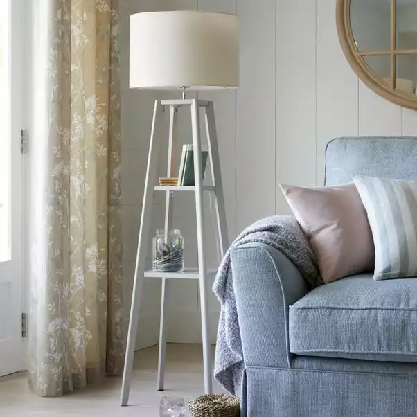 The Beaumont Floor Lamp is great for injecting a rustic and modern element to your home décor, designed with a cylinder shade and features a grey base, perfect for holding plants or any knick-knacks of your choice for an enhanced decorative touch.