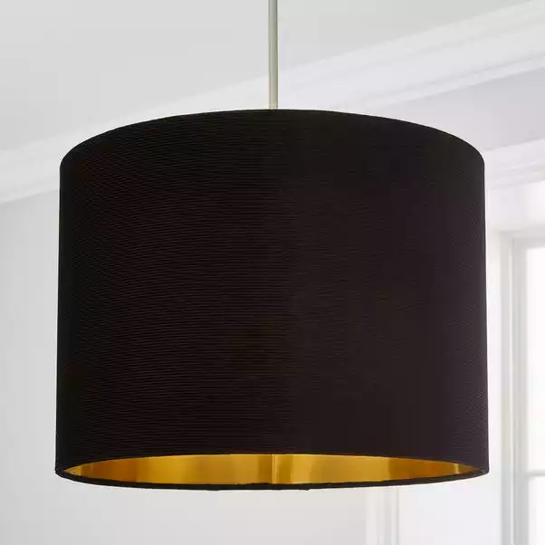 This beautiful shade is the perfect piece to accompany your home this year. Complementing an array of decors, this large black shade with a gold interior has a white frame and will look gorgeous anywhere in the house.