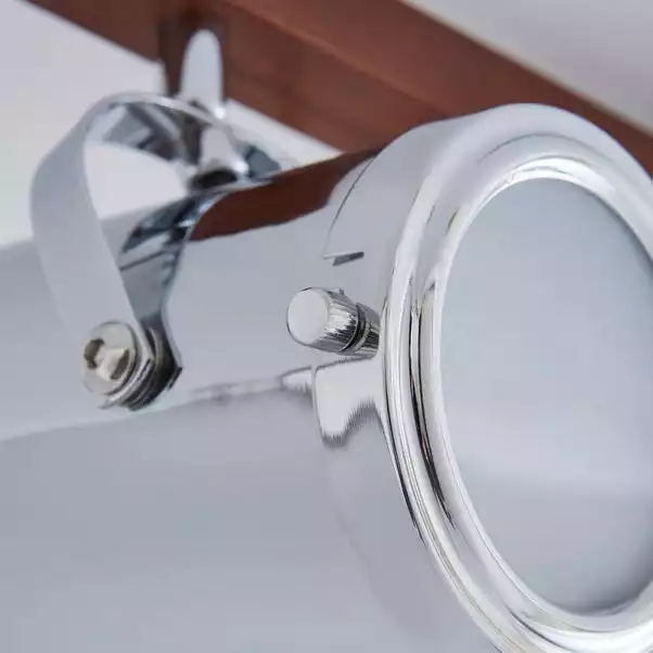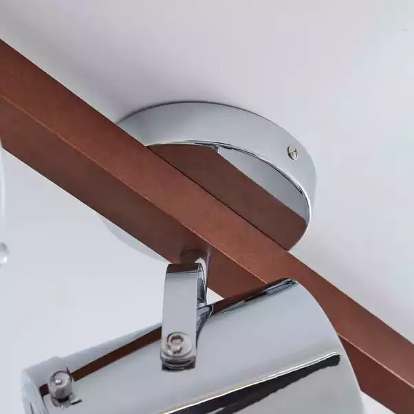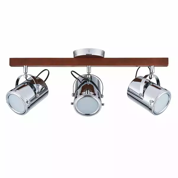 Elegantly crafted in a chrome and wooden finish to give your room a stylish touch, this studio inspired ceiling light features three spotlights.