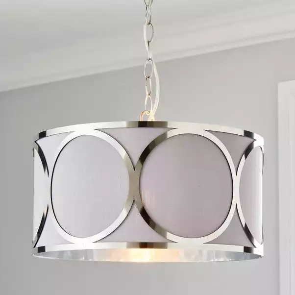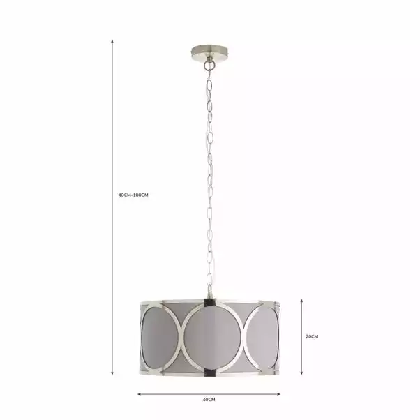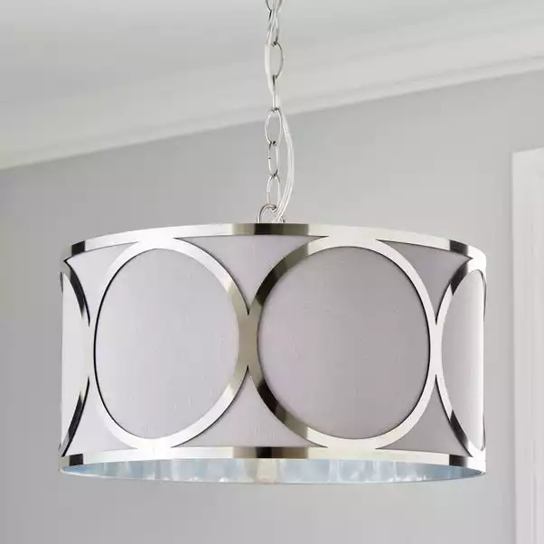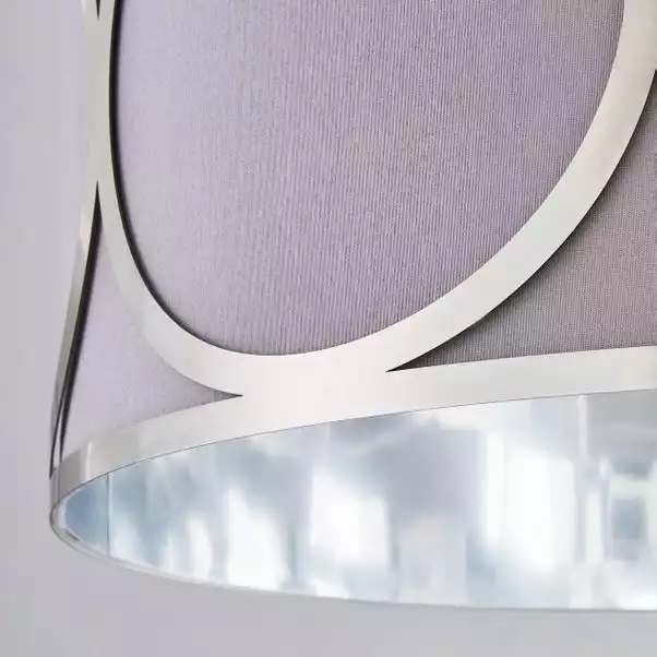 Want a modern, yet unique fitting to be a statement piece within your home? The Delphi 1 Light Pendant Fitting is the one for you. Whether it is paired with other pieces from the Delphi Range or hung alone, the simple grey colourway alongside the metal detailing will catch the eyes of both you and your guests. Made from faux silk and metal, it has an attractive look and feel and stylish chain.