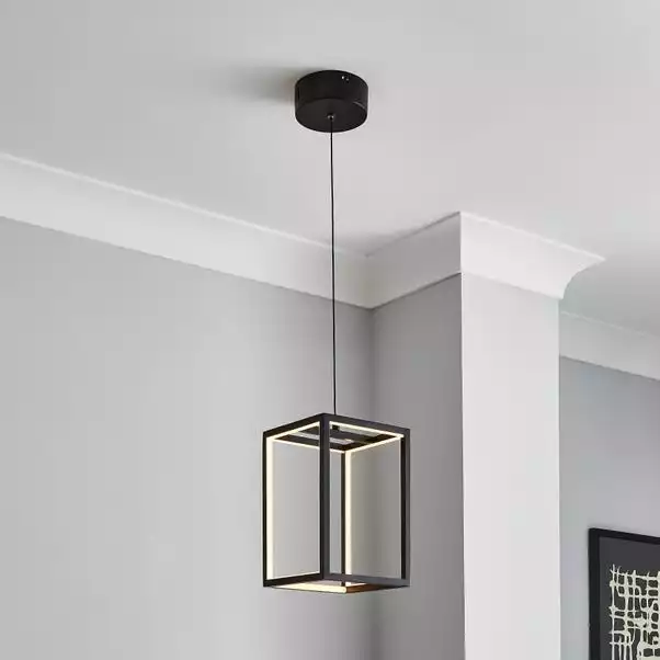 Featuring a black finish, this modern design Depere Pendant Ceiling Light is perfect for adding a contemporary look into a room. 1 x Integrated LED bulb are included within the Depere Pendant Ceiling Fitting. Matching family items are available in the Depere range.