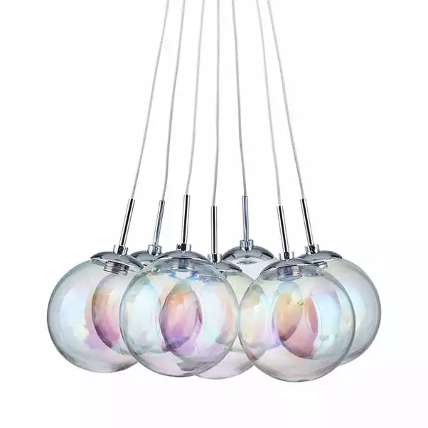 Add a touch of style to your room with this beautiful cluster fitting. Delicately crafted with seven iridescent bubble glass shades, this elegant light cluster features integrated LEDs.