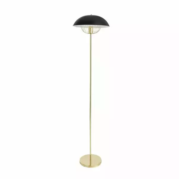 This modern Emzo floor lamp is perfect for adding a contemporary feel to your home. Crafted with a stunning black painted shade, finished with a striking gold metal cage and a gold metal base. This stunning floor lamp has a 1.5m cable foot switch. Matching Emzo family items are available to help coordinate your décor.