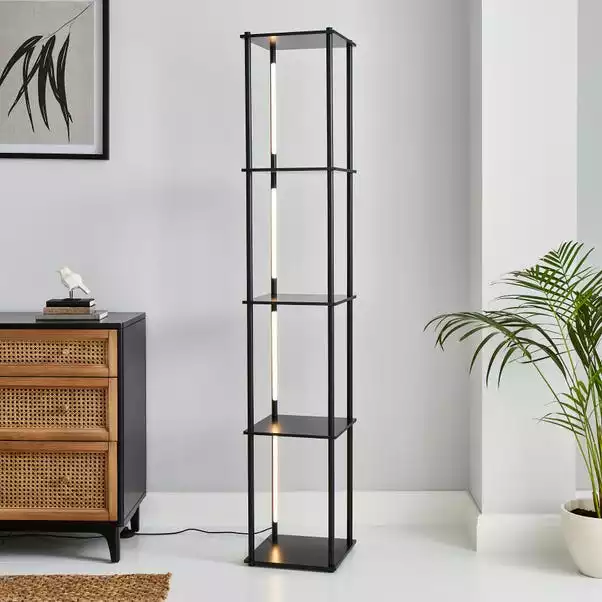 Featuring the Franklin Replaceable Integrated LED Shelved Floor Lamp. The modular format of this floor lamp allows you to build the light as tall as you need, and can be assembled with either 2, 3 or 4 shelves to suit the intended space. Perfect for displaying decorative accessories in your room and the integrated LED lights on the shelves will enhance and brighten up your space. This contemporary style piece is made from metal with a black colourway, perfect for complementing a range of décor styles.