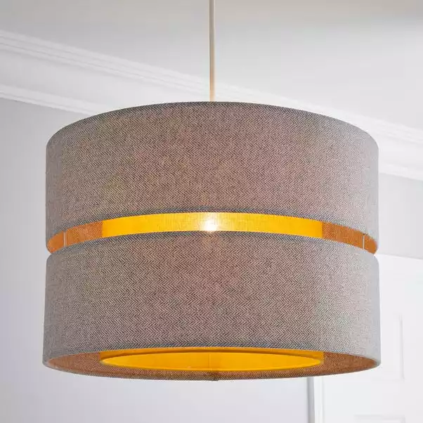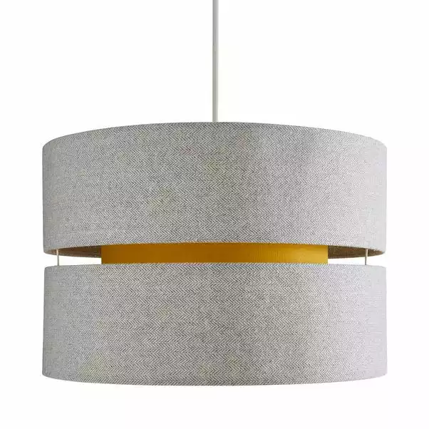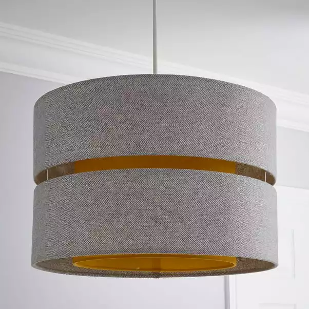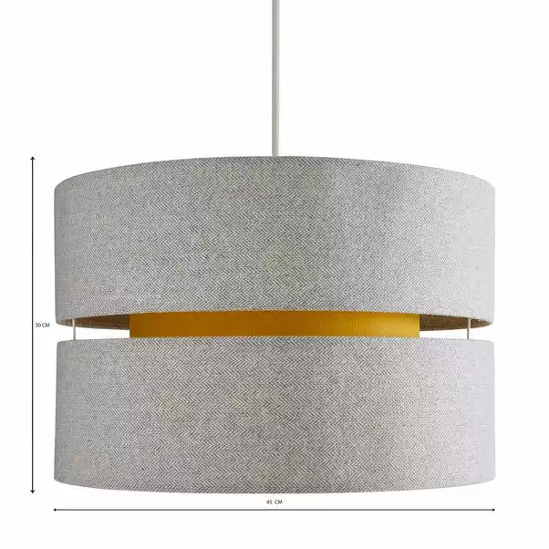 Made with a double tier design, the Frea Lennox 45cm Drum Shade is crafted from cotton in a grey herringbone texture, complete with a bright ochre tone inner shade to create a stunning effect.