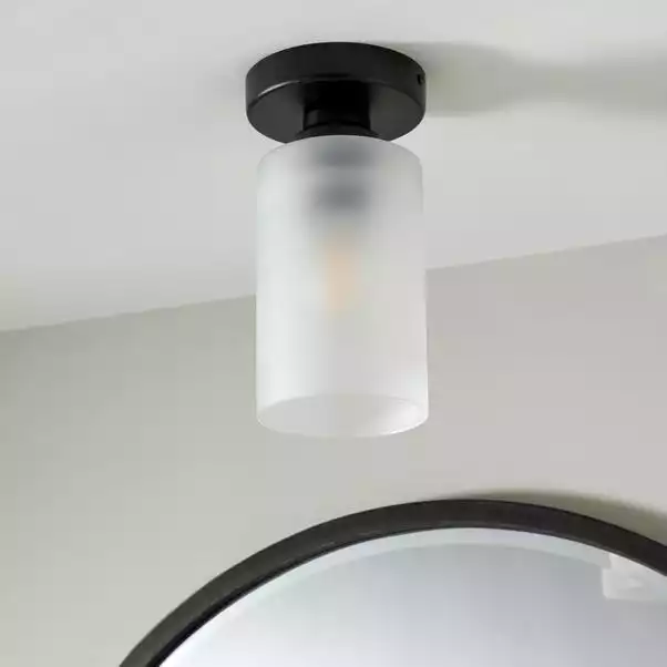 Introduce a contemporary element to your bathroom décor with the stunning Fryer Bathroom Flush Fitting. Beautifully crafted with a matt black metal plate and a frosted glass shade for a simple yet stylish look. This modern piece features a matt black finish, perfect for enhancing your décor with a modern touch. Dimmable compatible with a suitable bulb and light switch, making it both an attractive and practical product. With an IP44 rating – Zone 2, this light flush fitting is suitable for bathrooms. Coordinate your home with matching family items from the Fryer range.