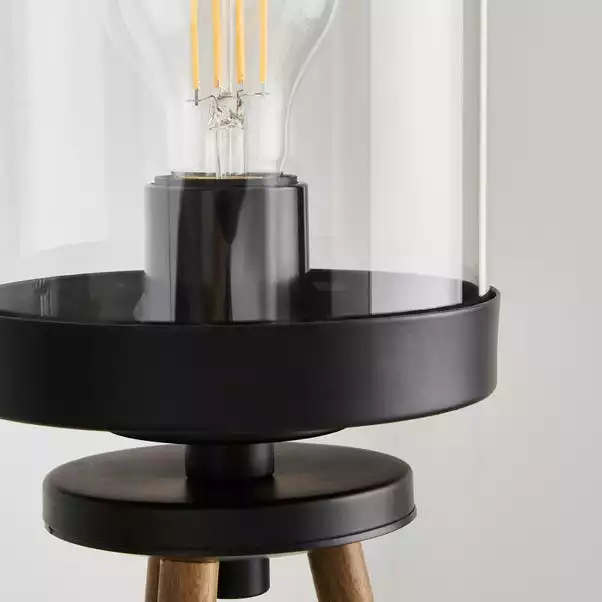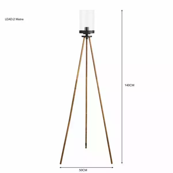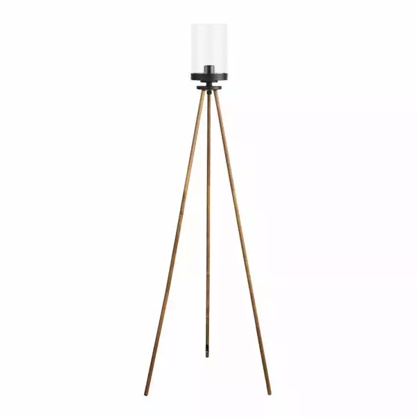 Add a unique style to your home with our Fulton tripod style floor lamp, featuring tripod style legs for a trendy look. It comes complete with a clear glass shade with an exposed bulb for that modern touch and is finished in a rustic Pine coating with an on and off foot switch which is easy to switch on and off whenever you desire.