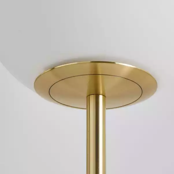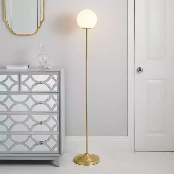 Wanting a classic, old-fashioned, but modern feel for your home? Then bring the Gigi Floor Lamp into your life. The gold stem and balled lamp provide a statement piece, with a modern colourway and twist. Mains powered and made from glass and metal, the Gigi Floor Lamp has a foot switch for ease of use.