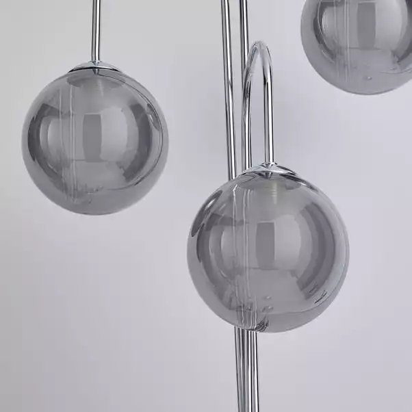 Part of the Equitorial Range, this stunning floor lamp with a chrome finish and smoked glass shade is the perfect addition to your home, with versatile colouring, this piece will complement an array of decors. Matching family items are also available, making your house even more coordinated if you choose.