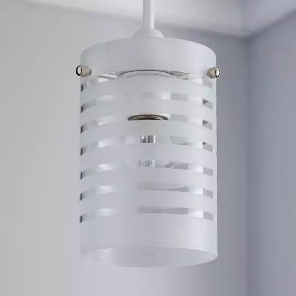 This Grayson light features a glass cylinder shape, with an etched frosting stripe pattern on the surface, perfect for a range of rooms in the home.