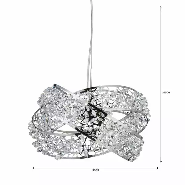 Delicately crafted in an interlocking band design, this light fitting features three lights and a chrome finish with faceted clear crystal jewels detailing.