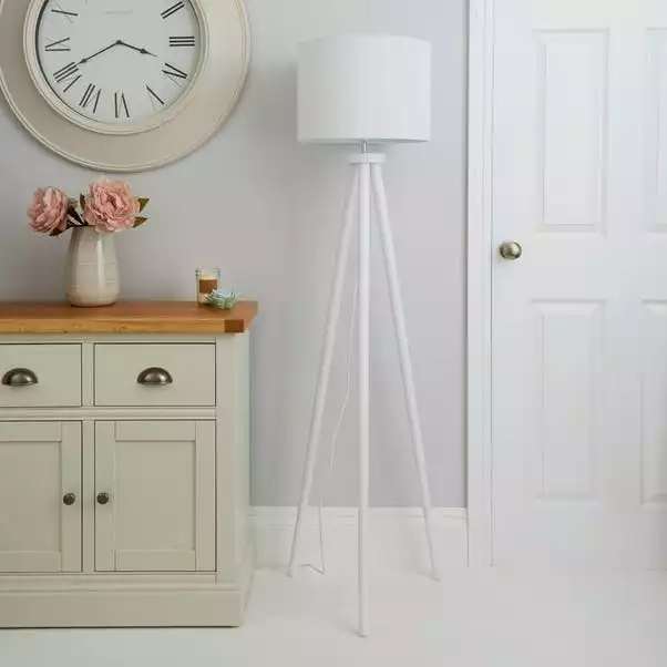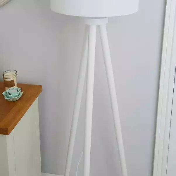 Add a modern piece to your home with this beautiful Jandia Floor White Lamp, crafted in a scandi design with a matt white wood finish with a matching shade in crisp white. Featuring a foot switch, the simple silhouette of this lamp ensures it sits perfectly with your existing home décor.