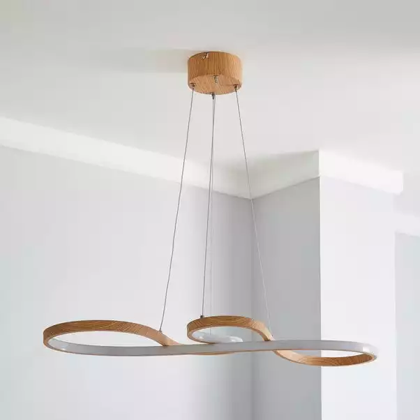 With its sleek and stylish design, the modern Jaxson LED ceiling fitting would make a stunning statement piece for any modern home. This elegant light fitting features a wood effect finish, complete with warm white integrated LEDs and height-adjustable clear wire suspension.