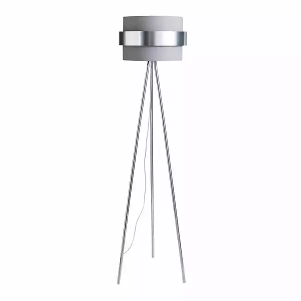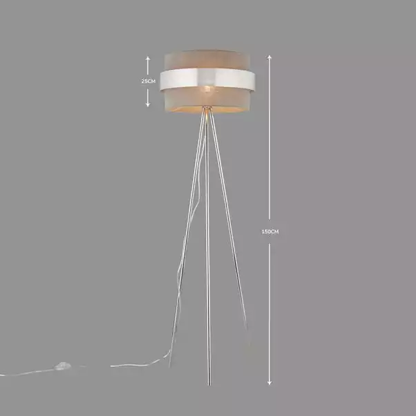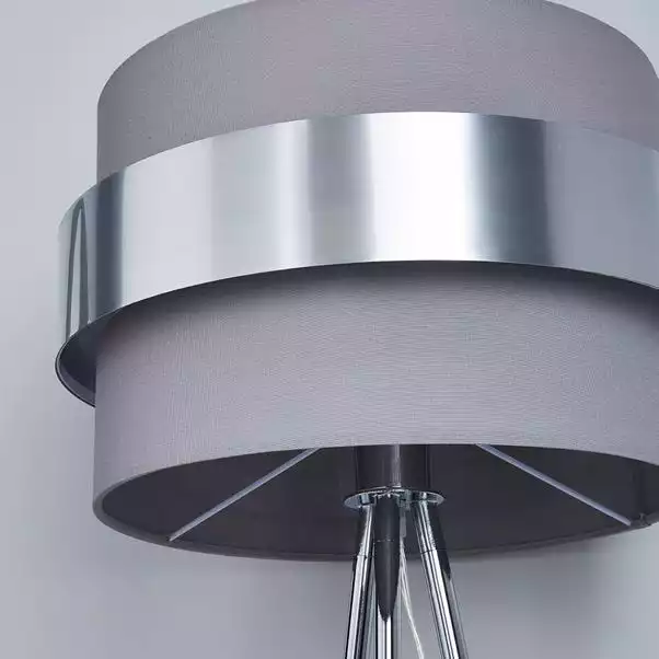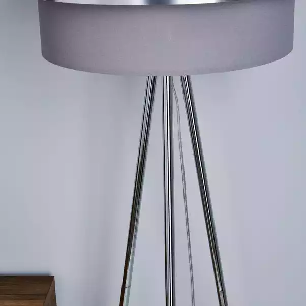 Add a stunning, statement piece to your room with this elegantly designed floor lamp. It features a grey, faux linen fabric and a chrome effect plastic finish, perfect for any room of the home.