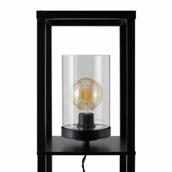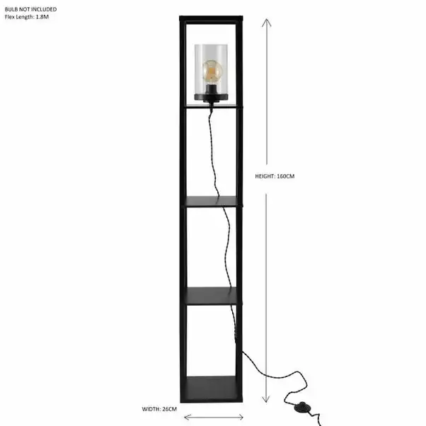 Introducing this incredible shelved floor lamp, great for a stunning lighting feature in your home but also practicality by offering a shelved unit. A painted black exterior provides an amazing contemporary foundation, with 3 tiers to either create an attraction with home décor or tidy away little home goods within. The different levels will help to create balance within your home, with the lamp element sitting on the top tier and foot switch creating easy accessibility. Compatible bulb for this product is 1 X Round 5W ES (Edison Screw) E27. Bulbs are not included, assembly is required.