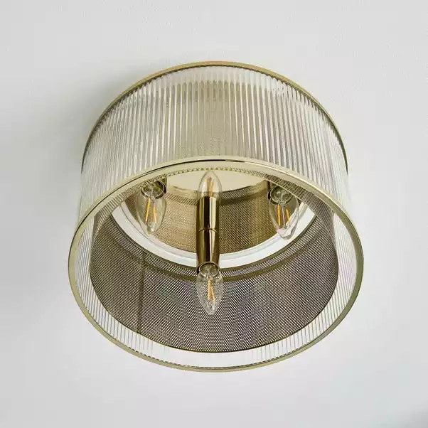 Featuring a beautiful, modern look, our Kruze flush light fitting will help bring a contemporary style into your home with the plated base and ribbed glass shade. This ceiling fitting requires 3 x Candle SES (E14) – 6W LED which is not included with the light. This ceiling light can be used with dimmable bulbs and switches. A 2-year guarantee is provided with this ceiling light.