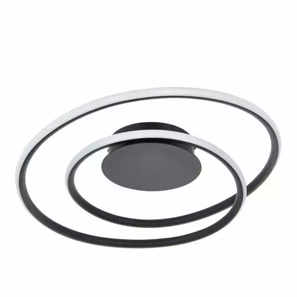 Stylish and modern for any room in your home, even your bathroom, this swirl light fitting is designed in a sleek black colourway. With an integrated energy efficient LED light, your room will be lit up perfect for the dull and dark days. Other matching family items are available.