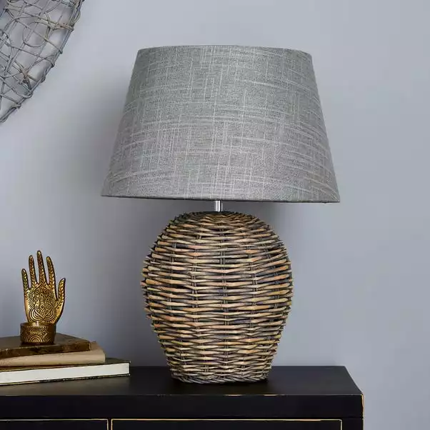 Bring a homely touch to your home with this Lari split weave table lamp, complete with a grey shade.