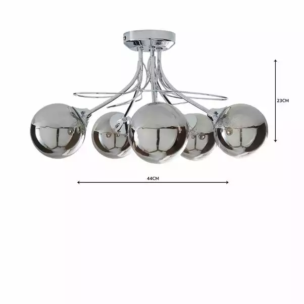 Dunelm Mateo 5 Light Glass Chrome Semi-Flush Ceiling Fitting