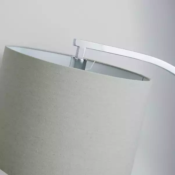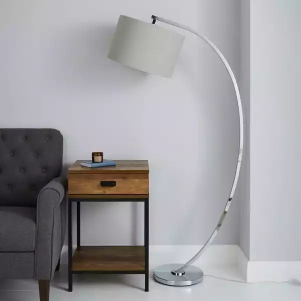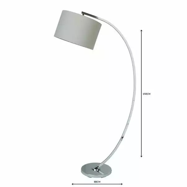 Add a touch of style to your living room with this elegant floor lamp. Beautifully designed with a chrome finish and a grey linen shade, this simplistic floor lamp features an easy-to-use inline foot switch and a curved arm structure, ideal for placing it over furniture.