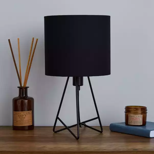 Available in a range of colours, the Hester lamp features a contemporary tripod base with a gorgeous black painted finish. Complete with a matching drum shade, this table would be a great addition to any room.