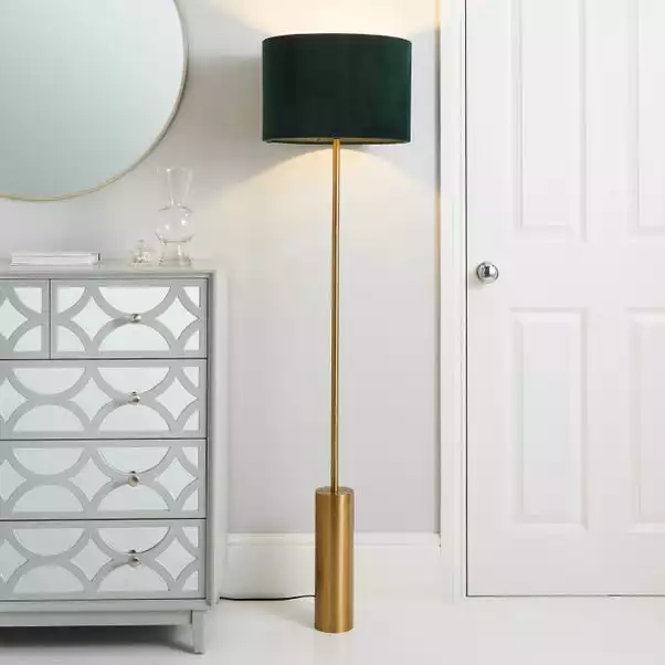 Featuring the luxurious and stylish Nesa Touch Complete Floor Lamp, with a brushed gold finish base and Bottle Green velvet shade. This floor lamp is the perfect piece to accompany any room of the house, with its modern colourway that will complement an array of home decors. Matching family items are available to help coordinate the look of any room.