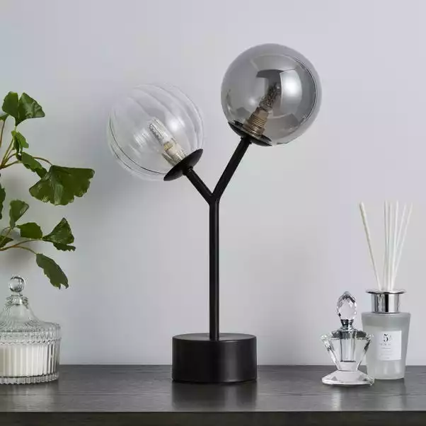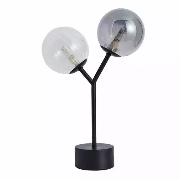 The Nila table lamp is perfect for adding a luxurious feel to your room. This stylish table lamp is designed with two round shades made from clear and smoke glass, finished with a painted black metal base and frame. This gorgeous table lamp will fit perfectly with an array of home styles, pair it with other pieces from the Nila range to coordinate your home décor.