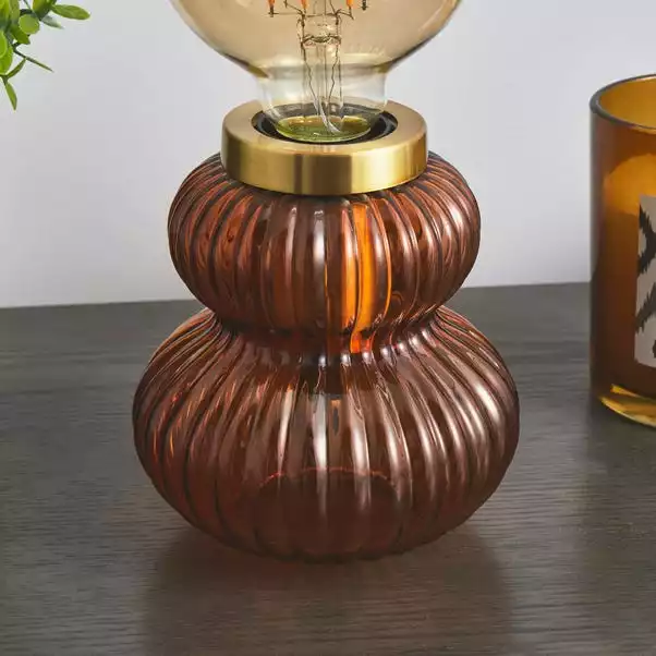 Add a modern touch to your home with this simple yet stylish Nolan Ribbed Glass Table Lamp Base. Beautifully designed with ribbed glass and a satin brushed gold plate, this totem shaped table lamp is available in a choice of two colours to complement your home décor style. To complete the look, pair this lamp with a decorative bulb for a luxurious look.