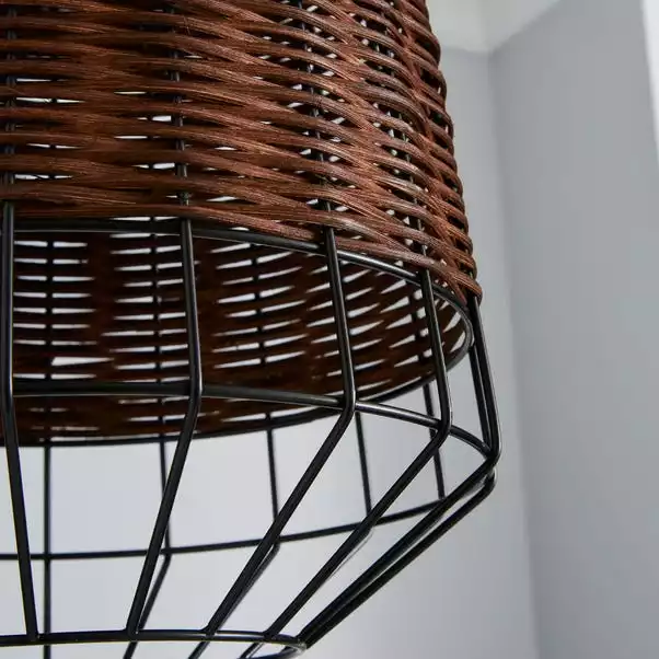 The Ohio Dark Pendant features a Dark natural weaved rattan shade with a modern caged structure. The gloss black finish and durable wired structure make this the perfect shade for any home.