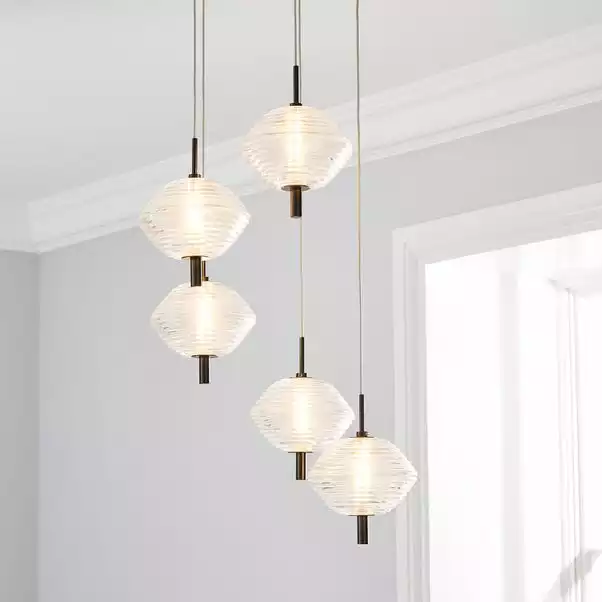 The Orb LED CLuster Fitting is perfect for adding a modern, industrial chic styling to your home. This stunning light fitting features brushed dark nickel finished details, as well as integrated LED lights and textured ribbed glass shades to create a stylish look that would enhance any space.