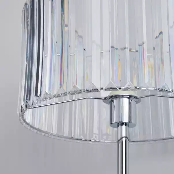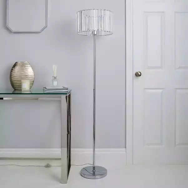 Inject a glamorous touch to your home décor with the Prism Floor Lamp, crafted with a durable steel and Acrylic prism shade and completed with a sleek chrome finish for a modern appearance. This light also comes with a cable length of 150cm.