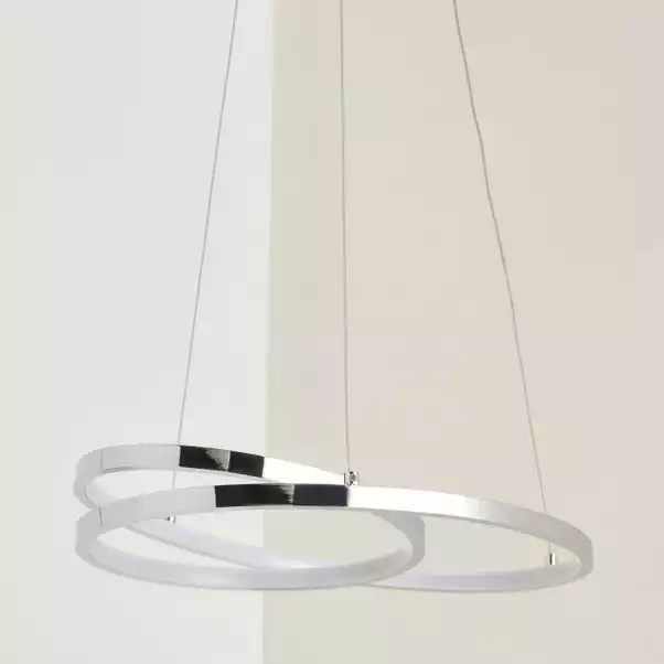 Stylish and modern, this contemporary swirl designed ceiling fitting comprises of a matt finishing. With an adjustable drop length, you can choose how low or high you desire to have the light fitting. This LED light is dimmable so you can set the perfect atmosphere in the room. Available in a range of colours.