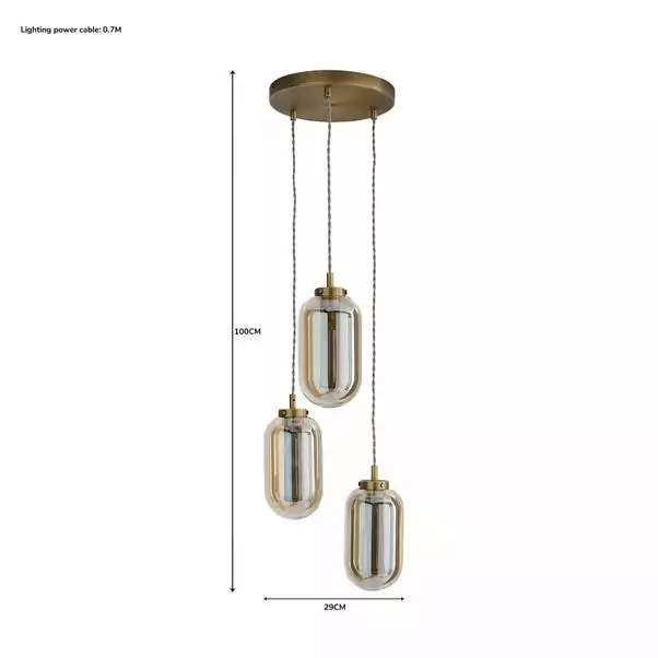 This stunning ceiling fitting with a luxurious design will stand out in any room of the house, with its antique brass colourway that will complement an array of home decors. With an adjustable height, this cluster fitting has an equatorial trend, is dimmable compatible and matching family items are also available.