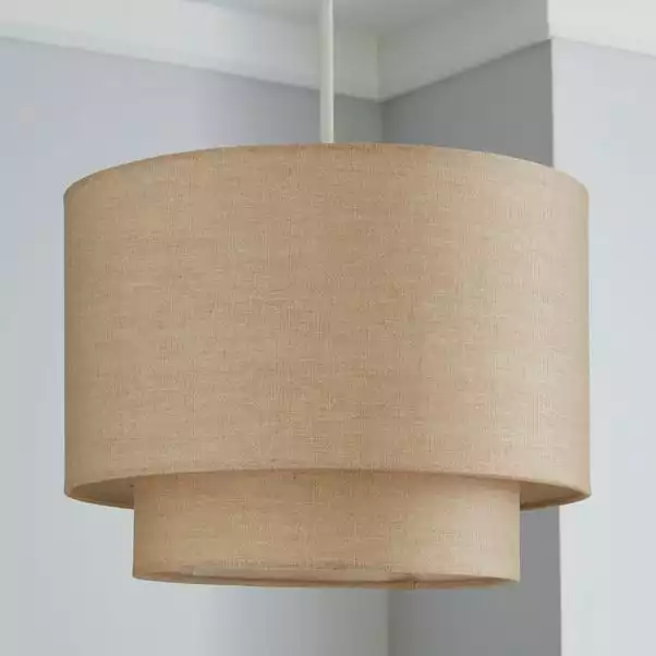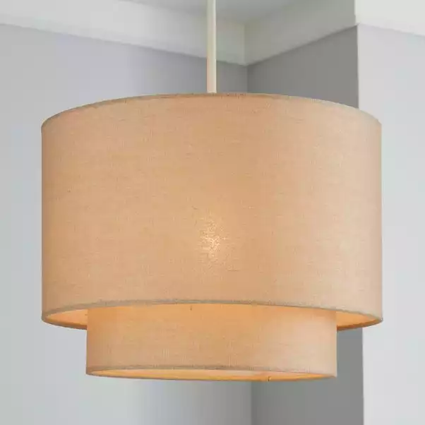 Featuring a contemporary two tier shape, this natural coloured light shade offers a textured linen shade and modern style.