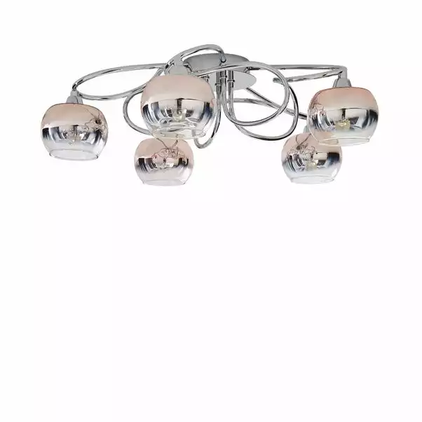 Featuring five ombre tinted blush pink glass bauble shades designed with delicate clear glass droplets, the Seychelles ceiling fitting would make a glamorous addition to any room. This beautifuly crafted fitting is made with a beautiful woven arm frame with a sleek chrome effect finish.