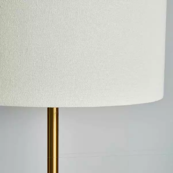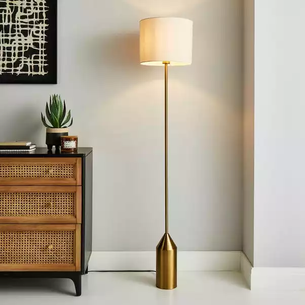 Featuring the modern and stylish Sole Gold Floor Lamp, with a stunning satin brushed gold finish base and an ivory faux linen shade. This floor lamp is the perfect piece to accompany any room of the house, with its modern colourway that will complement an array of home decors. Other colours are available to help coordinate the look of any room.