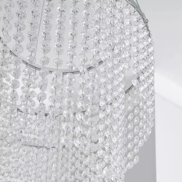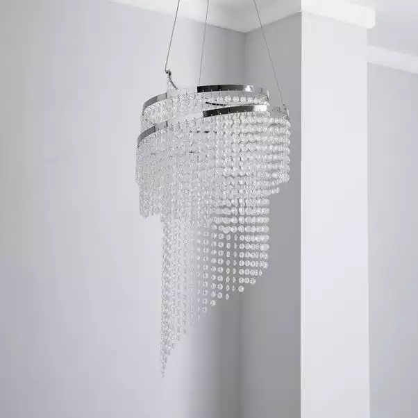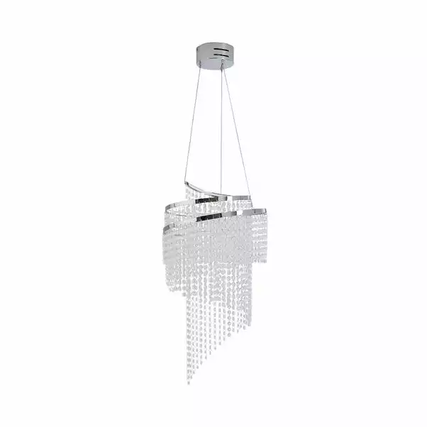 Crafted with sparkling acrylic beads in a cascading spiral design to create a glamorous feel, the Spiro LED light fitting would add a luxurious feel to any space. This stunning fitting comes complete with integrated LEDs, a sleek chrome finish and is height adjustable from 90cm to 130cm.