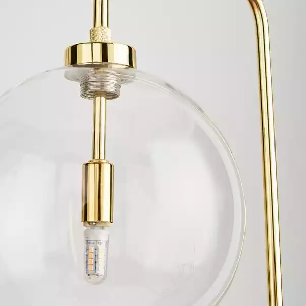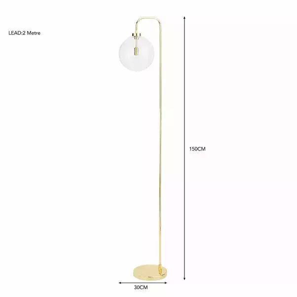 Simple and elegant, this Tanner Floor Lamp features a round glass shade which shows an exposed bulb for that modern finish. It comes complete with a sturdy base and a 1.8m cable which features a foot on and off switch. This lamp is available in another colour to suit any home decors and has matching family items available to purchase separately.