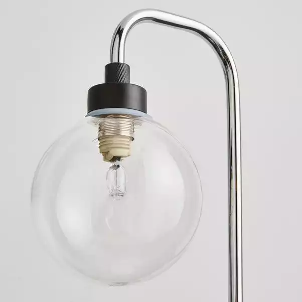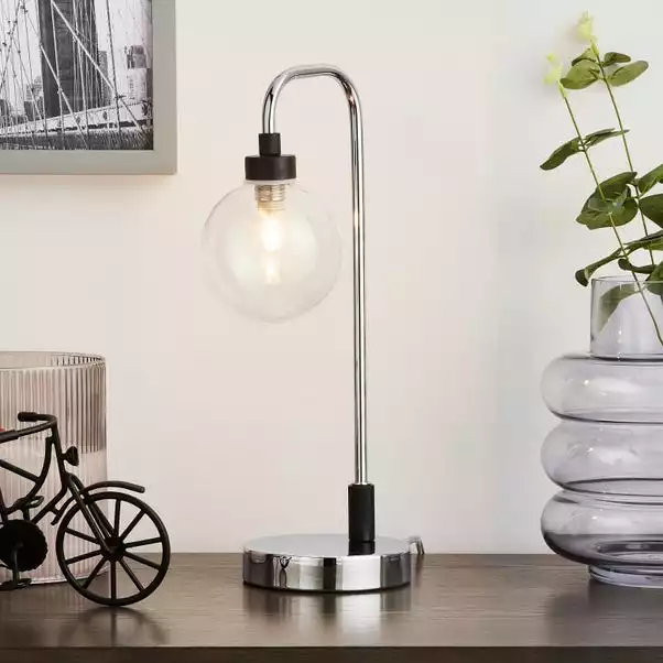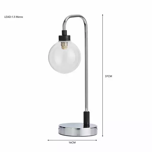 Add a luxe look to your table with our Tanner Table Lamp, detailed with a round glass shade and a shiny finish. It comes with a clear cable wit an easy to switch on and off in-line switch. This lamp is available in another colour and has matching family items available to purchase separately.