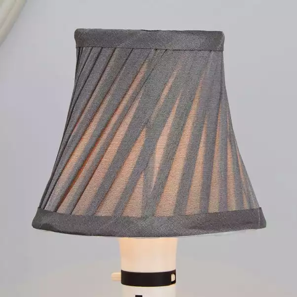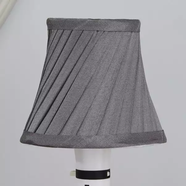 Designed with a grey colourway, this satin candle lamp shade offers an attractive twisted pleat texture.