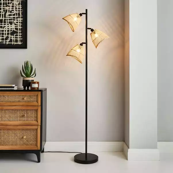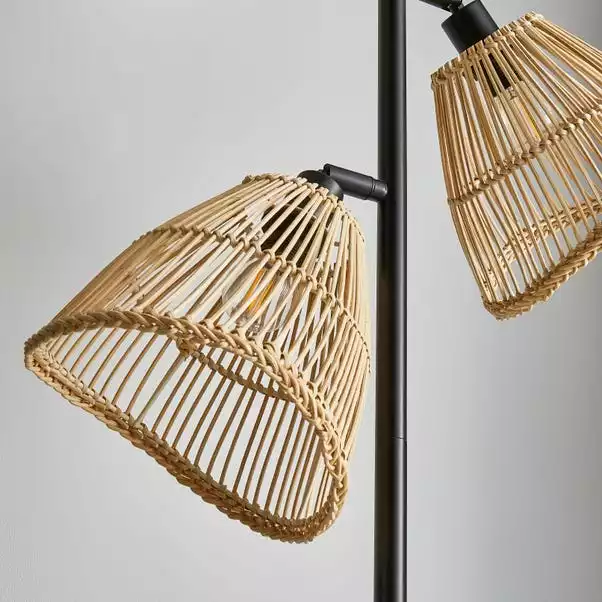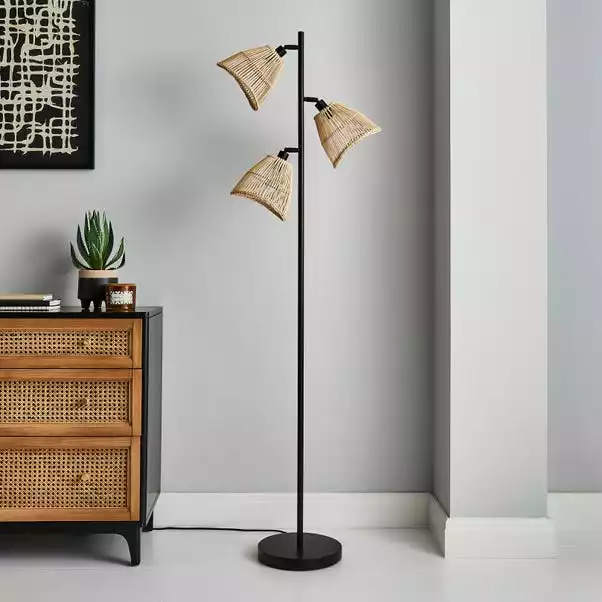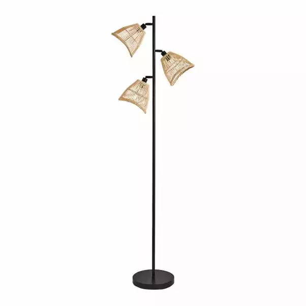 Part of the Elements trend, this stylish Jaula 3 Light Rattan Floor lamp has a contemporary design that will complement an array of home decors. Featuring a black base and straight stem with three adjustable natural rattan shades, perfect for adding a modern contemporary touch to any room. Matching family items are available, helping to coordinate your home, to create the dream look.
