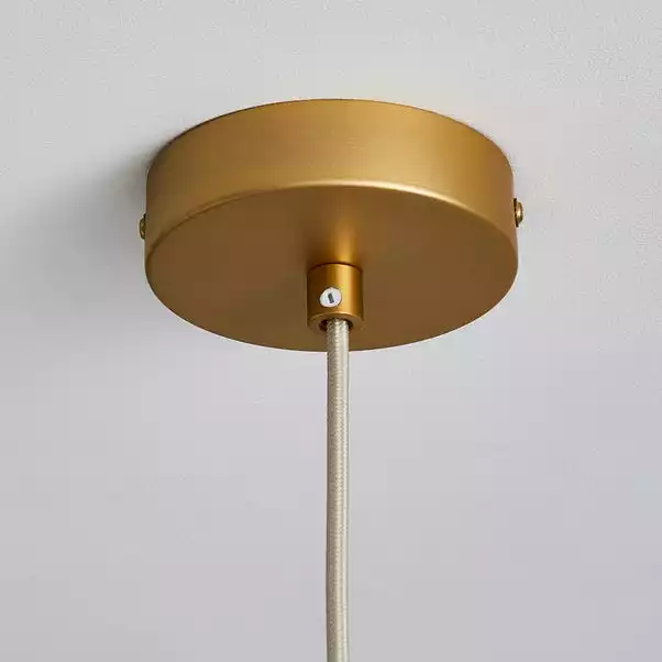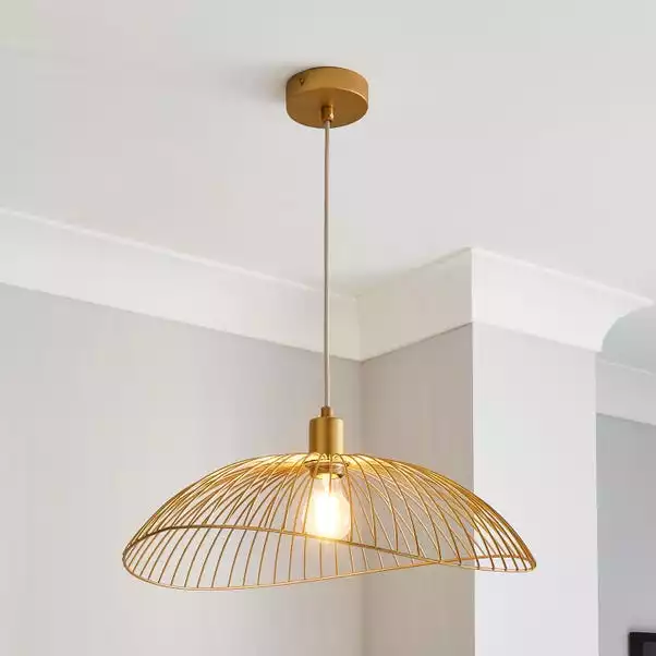 Part of the Elements trend, this beautiful Jaula 1 Light Gold Ceiling Fitting has a contemporary design that will complement an array of home decors. Featuring a satin gold effect finish base, with a height adjustable 50cm gold metal shade, perfect for adding a modern contemporary touch to any room. This piece is dimmable compatible and matching family items are available, helping to coordinate your home to create the dream look.