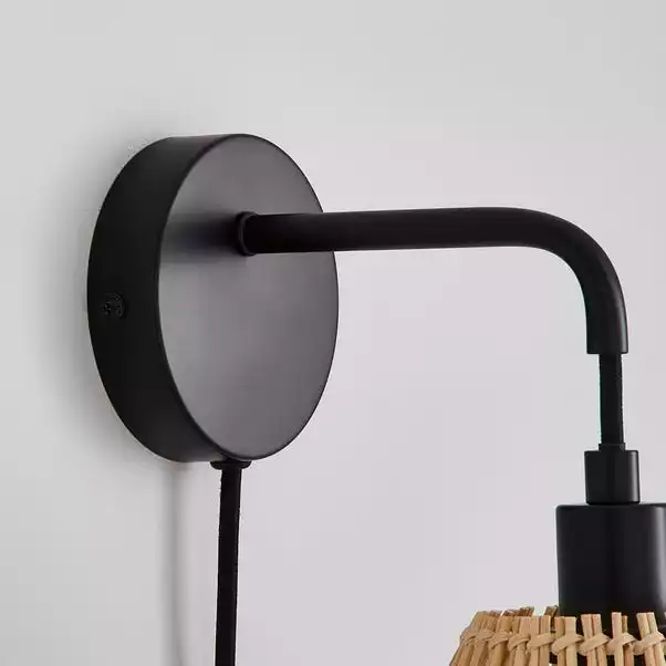 Part of the Elements trend, this stylish Jaula Rattan Plug in Wall Light has a contemporary design that will complement an array of home decors. Featuring a black base and curved stem with a natural rattan shade, perfect for adding a modern contemporary touch to any room. Matching family items are available, helping to coordinate your home, to create the dream look.