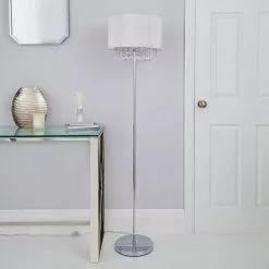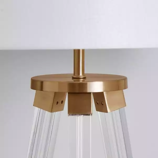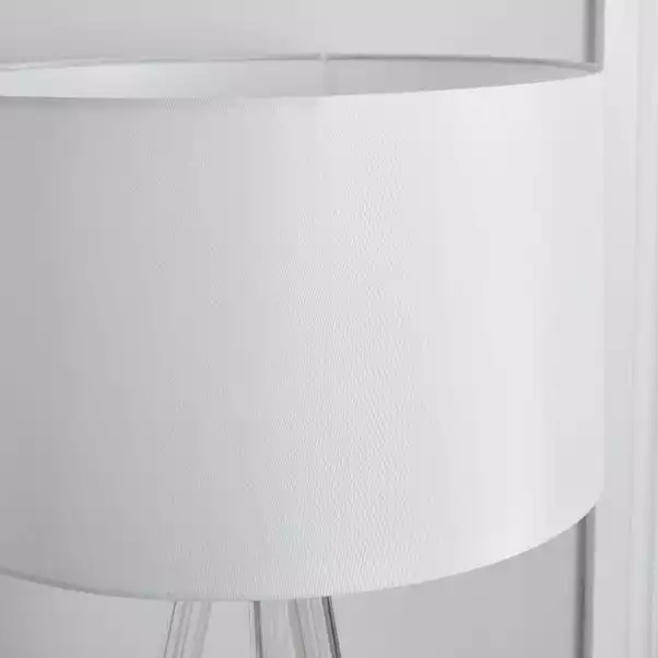 Beautifully crafted, the Hotel Finley Tripod Floor Lamp features a clear acrylic base tripod design, metal detailing and a stunning white fabric shade. A perfect statement lamp to inject a glamorous and luxurious feel to your home interior, this floor lamp will complement an array of home decors. Coordinate your home with matching family items, this piece is available in Gold and Silver.