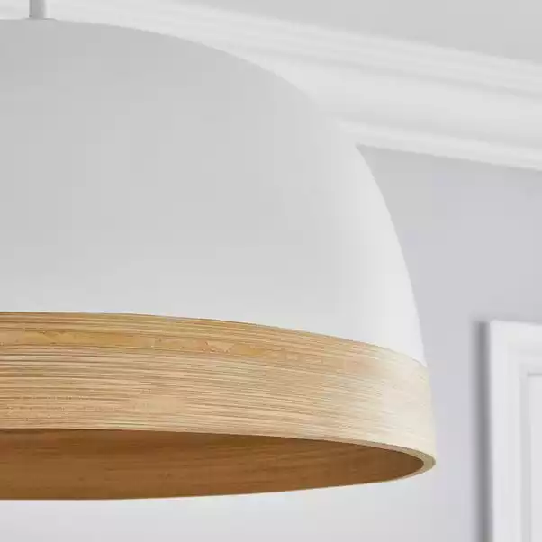 The Bamboo Easy Fit Pendant is the perfect way to personalise your room. Crafted from bamboo, this gorgeous dome shaped pendant features a matte black painted finish, complete with a natural bamboo trim. This stunning easy fit pendant is perfect for adding a natural touch to your home and great for brightening up your space.