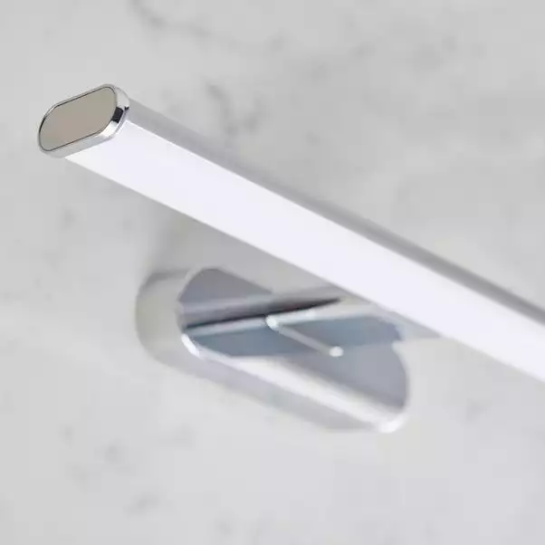 With a clean tine injection moulded over mirror light, this chrome plated bathroom light is perfect for brightening up your bathroom and giving you the perfect lighting. This light includes a frosted shade for a modern touch. This light is dimmable when twinned with a trailing edge dimmer switch. This bathroom light include 8W integrated LEDs (600 lumens).