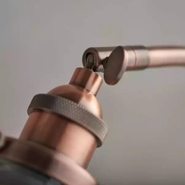 The Vogue Tobermory Table Light is perfect for injecting a modern retro touch to your home décor. This piece is finished in an aged copper plating with authentic knurled lamp holder detailing and a clear glass shade. Complete with an accessible on/off knuckle switch, making this a practical table lamp for your room and a perfect addition for today’s stylish homes to create that on trend bar, bistro look. Pair this table light with filament LED lamps for that perfect industrial style.
